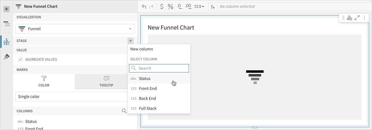 • To generate stage names based on a custom formula, select New column and enter a formula in the toolbar.