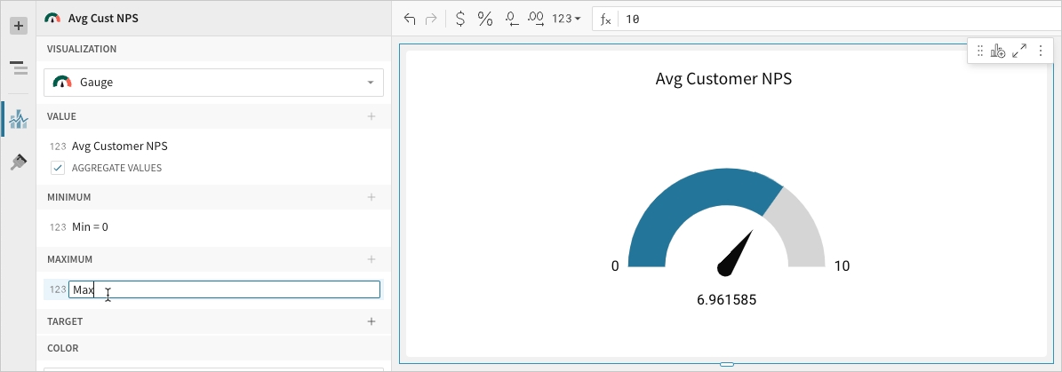 Analytics Pro features various properties and format options that give you the flexibility to build detailed gauge charts.