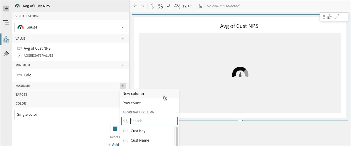 📘You can also select or replace an existing column by dragging and dropping a column name from the Columns list to the Maximum property.