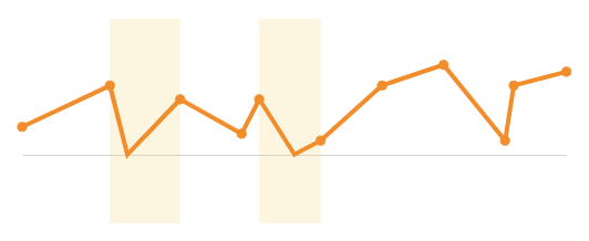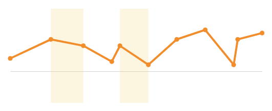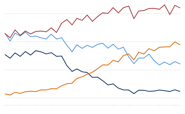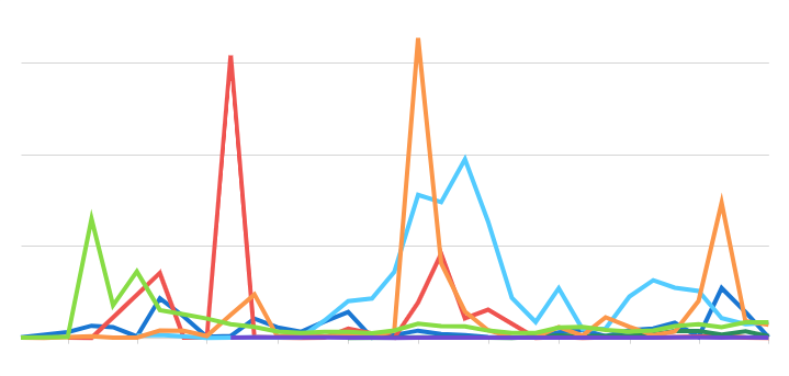 📘Multiple variables in the y-axis result in a multi-line chart in which each data series represents a measure of a different variable. The By category colour setting can also generate a multi-line chart, but the resulting series represent sub-categories (within the x-axis categories) that measure the same variable.