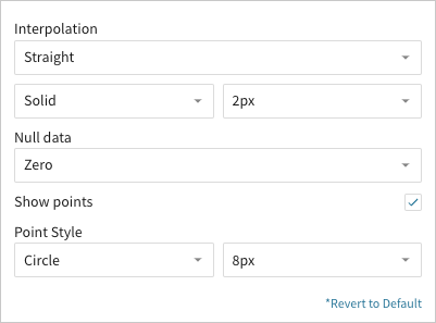 🚩Line charts support up to 25,000 data points. If the configurations result in a data set that exceeds this limit, the chart displays the first 25,000 data points, and a warning message indicates that the chart is incomplete. To reduce the number of data points, aggregate the values or apply data filters to the chart or source element.