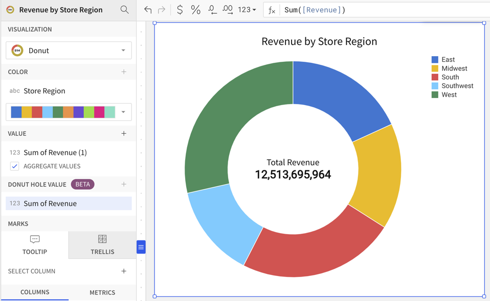 If you're creating a donut chart, you can optionally add a KPI to the hole of the donut.