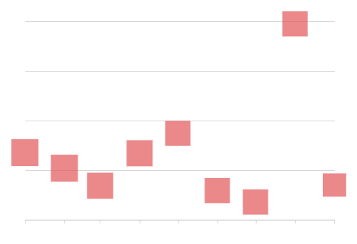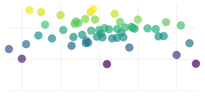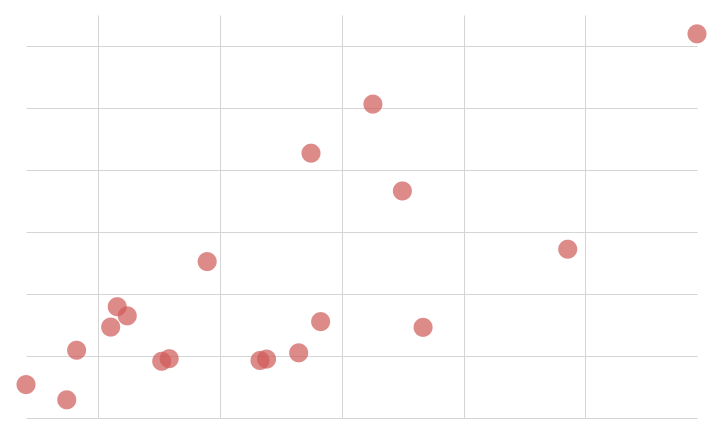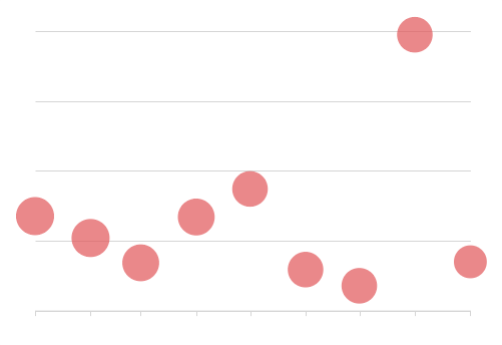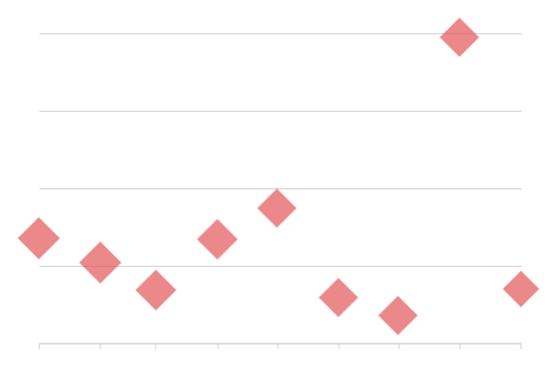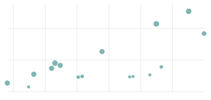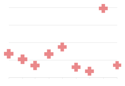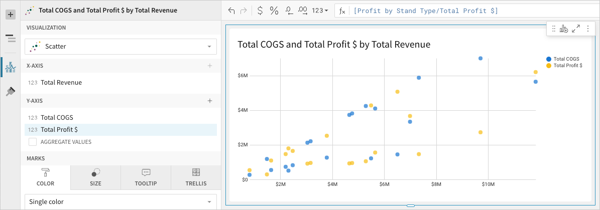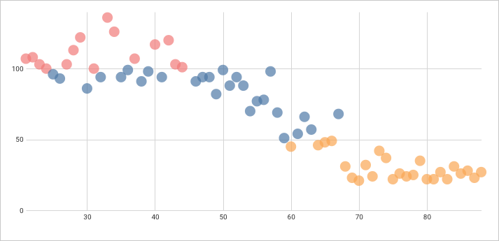 📘Multiple variables in the y-axis result in a multi-series scatter plot in which each data series represents a measure of a different variable. The By category colour setting can also generate a multi-series scatter plot, but the resulting series represent sub-categories that measure the same variable.