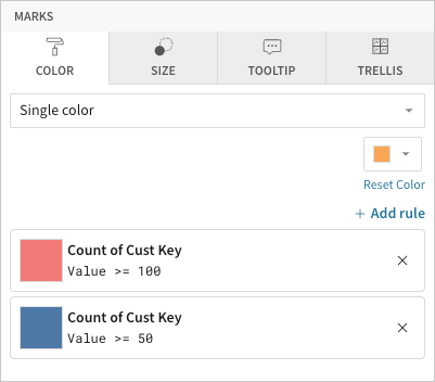 💡When the conditions of multiple rules are met, Analytics applies the formatting rules in order of precedence, from top to bottom. Drag and drop rule blocks to reorder them as needed.