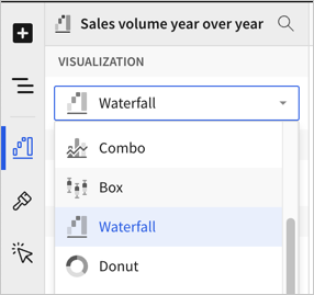 In the Chart property, click the dropdown field and select Waterfall from the list.