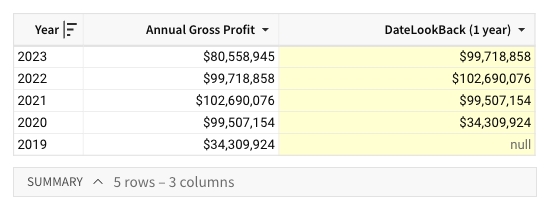 DateLookback([Annual Gross Profit], [Year], 1, "year")