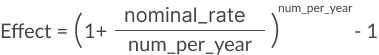 Effect(nominal_rate, num_per_year)Function arguments: