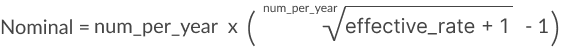 The nominal annual interest rate for an effective rate of 7%, paid 12 times a year (monthly). This example returns 6.78%.