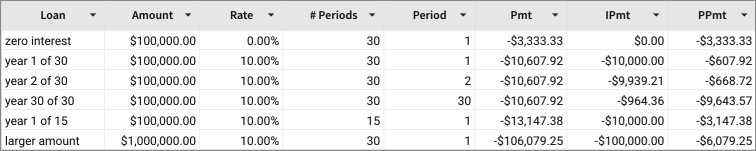 The PPmt function returns the principal portion of a periodic, constant payment for an investment or loan with a constant interest rate.