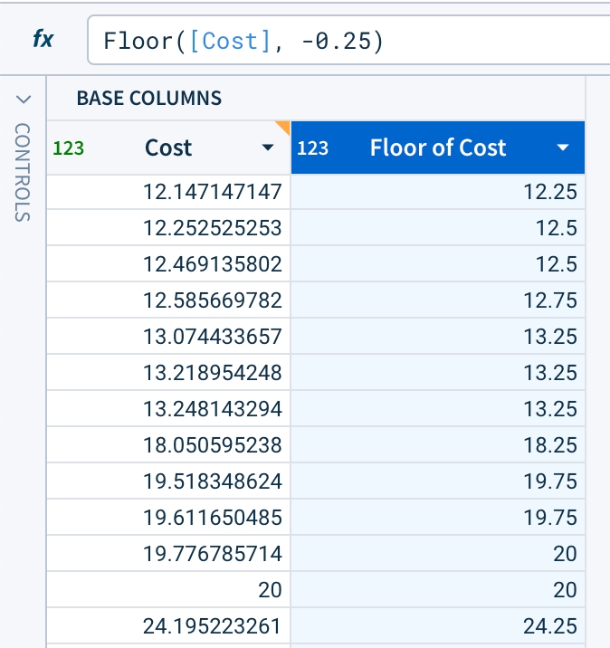 Floor([Cost], -0.25)