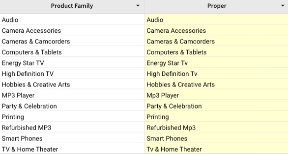 The Proper function converts text to proper case, which capitalizes the first letter of each word and renders all remaining letters in lowercase.