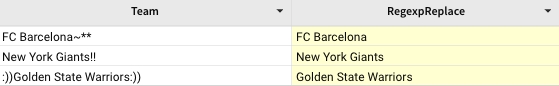 RegexpReplace([Team], "[^a-zA-Z0-9\\s]", "")