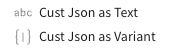 The Variant function converts the input value to a variant type. Currently, all variant type data will be interpreted as JSON. Converts the input value's data type, but does not otherwise change the input value. Does not apply JSON formatting.