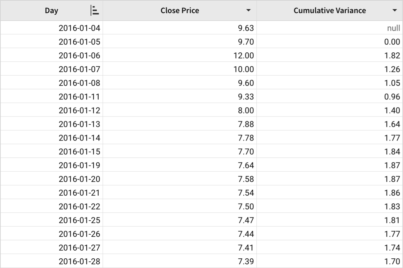 CumulativeVariance([Close Price])