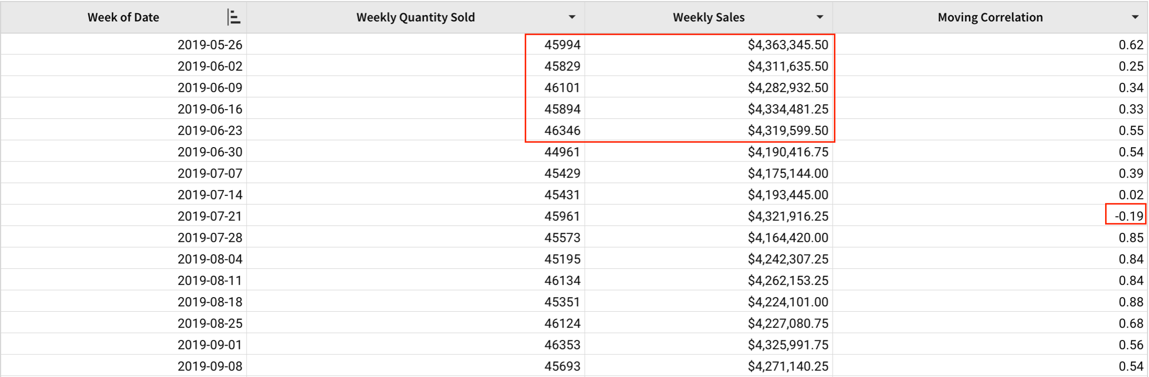 MovingCorr([Weekly Quantity Sold], [Total Weekly Sales], 0, 4)