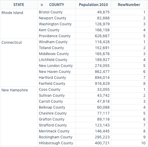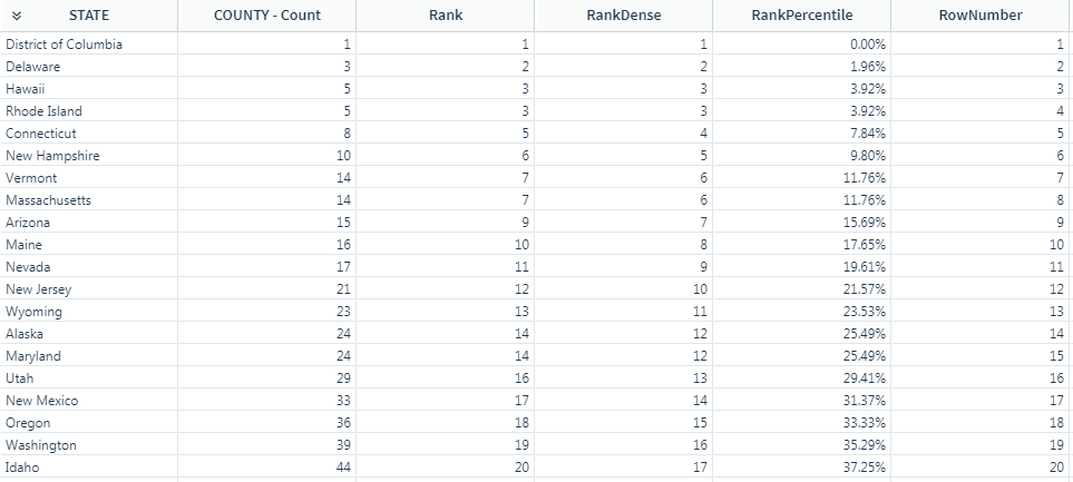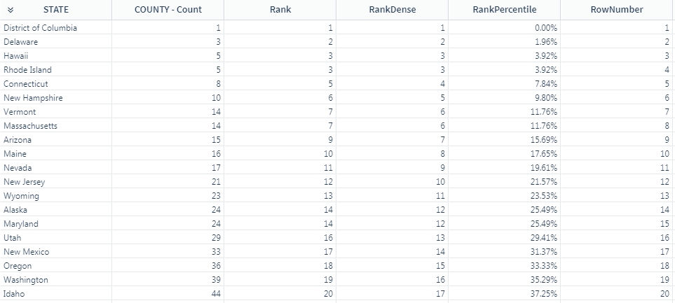 📘Each row is numbered according to the input column’s ordering, without taking into account duplicate values. For example, if the input includes “Anne”, “Jane”, “Jane” and “Pari”, the values would be ranked 1, 2, 3 and 4.