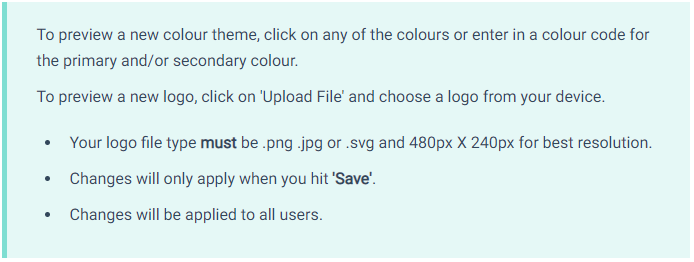 Alongside this you are now able to upload a custom logo by using the 'Upload File' button. This logo will replace the existing logos on the web portal and booking panel.