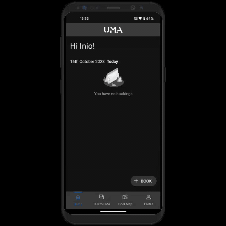 To book a desk, tap **book** or go to the floor map to identify the desk you want to book.